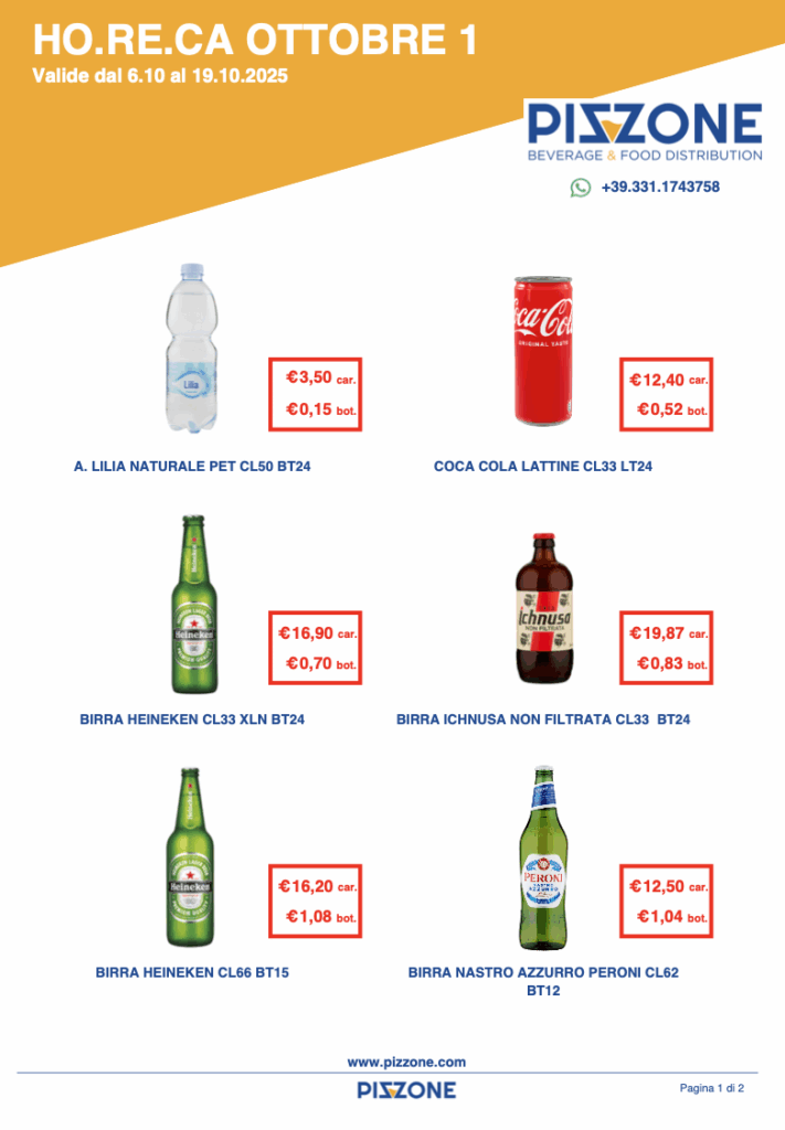 Offerte Ho.Re.Ca. Ottobre 2025 – Le promozioni beverage di Pizzone Distribuzione